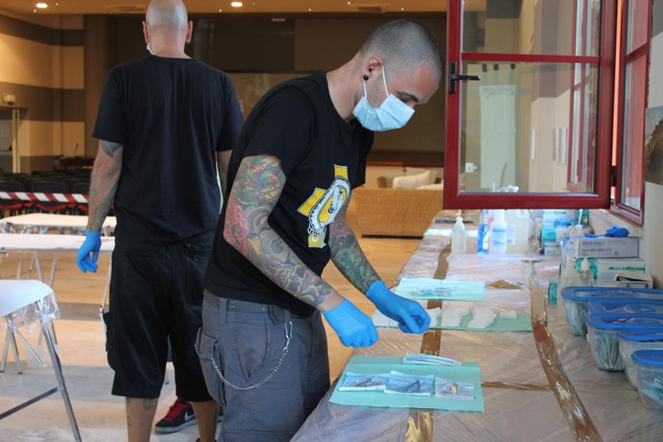Angelo Nardò preparando un set up sterile in occasione del suscon 2011. L’evento annuale di sospensioni corporali più importanti d’Europa.